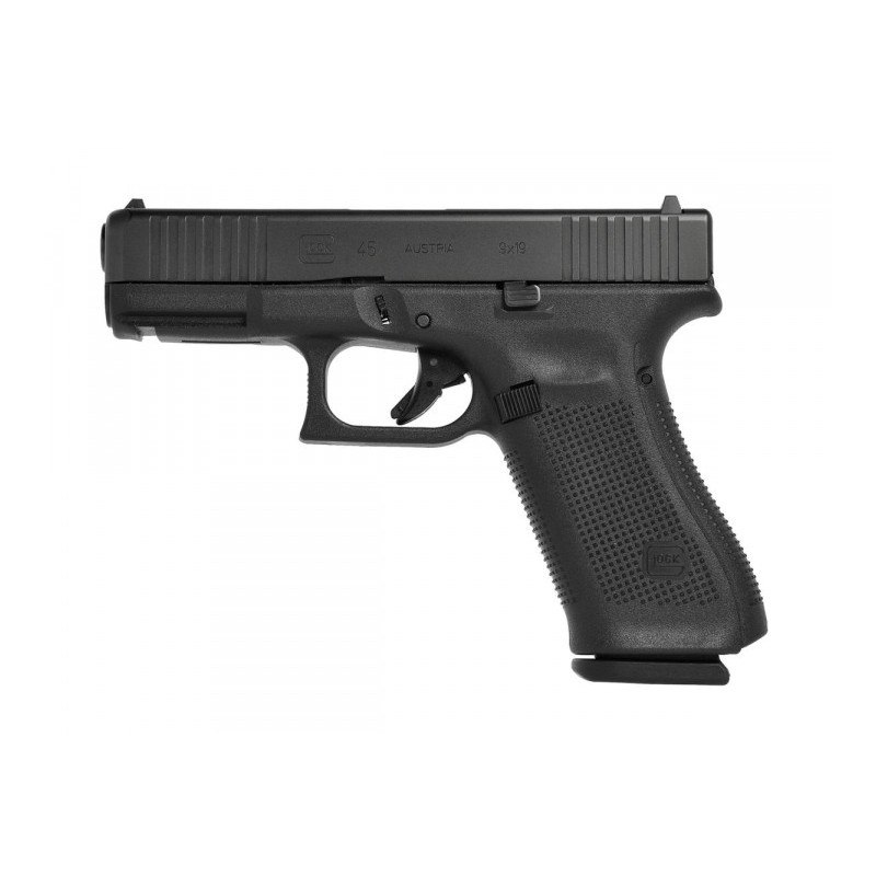 Le G45 est un pistolet Crossover en 9 mm Luger combinant une culasse compacte avec une poignée standard. Comme le G19X, il a été développé par GLOCK pour correspondre aux attentes militaires. Cependant contrairement au G19X, le G45 dispose également du puits de chargeur évasé comme sur les GLOCK Gen5. Sa couleur notamment le rendent idéal pour les forces de l'ordre et civils