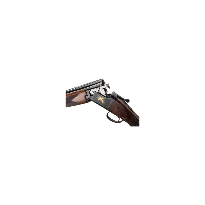 Le B525 Hunting Black Gold est de ces armes qu’on aime autant contempler qu’admirer. La scène de chasse dorée ressort magnifiquement sur le fond noir et trouve écho dans queue de détente également dorée. Le garde-main tulipe et la crosse pistolet sont en bois de noyer turc de grade 3.