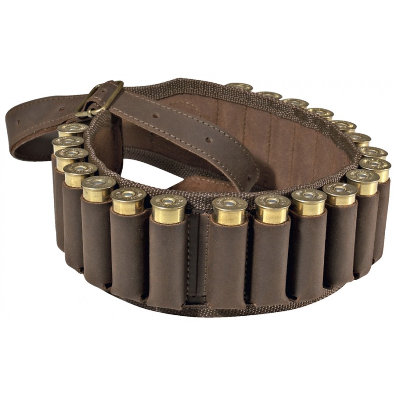 Cartouchière cuir, 20 tubes Cal. 12. Sangle réglable.