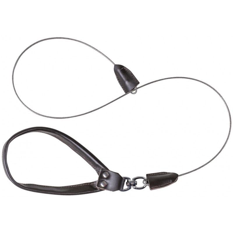 Câble tire-gibier monopièce, à vertèbres pivotantes, poignée gainée cuir et cordon en acier.